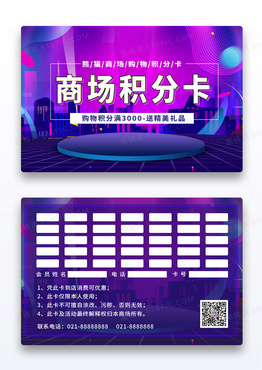炫酷紫色炫丽舞台背景商场积分卡设计