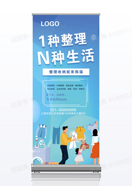 蓝色卡通整理生活换季收纳展架
