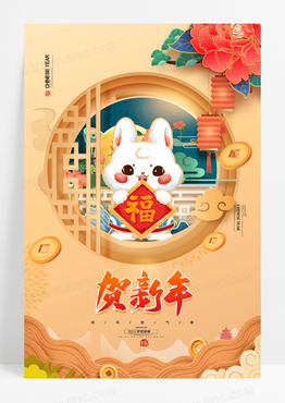 金色喜庆简约2023春节正月初一宣传海报2023新年兔年春节习俗
