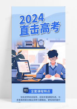 蓝色清新插画风2024直击高考高考倒计时培训长图
