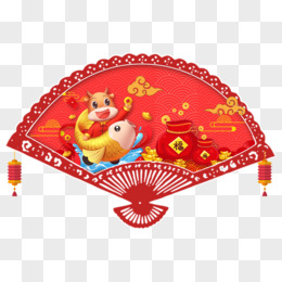 红色扇形新年牛年小牛和锦鲤创意合成元素
