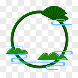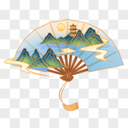 创意中式国潮工笔画风景扇子免抠装饰元素