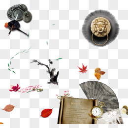 卡通新年装饰通用素材红色卷轴折扇和中国结免抠元素