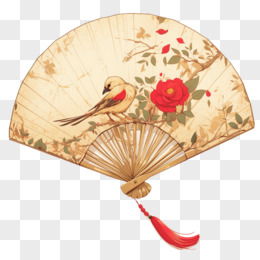 七夕卡通风古风喜鹊牡丹花折扇免抠元素