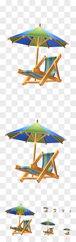 蓝色条纹遮阳伞躺椅卡通夏天