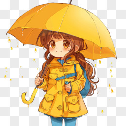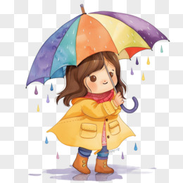 卡通可爱拟人穿雨衣小熊打伞免抠元素