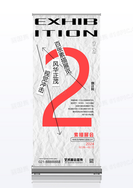 白纸褶皱简约艺术展美术展宣传展架易拉宝