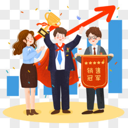 手绘卡通销售人员荣获销售冠军插画免抠元素