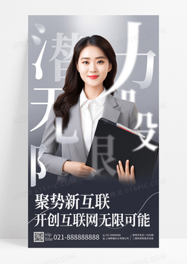灰色简约笔画层叠风互联网职场人物手机宣传海报
