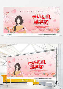 粉色简约2020世界母乳喂养周宣传展板设计