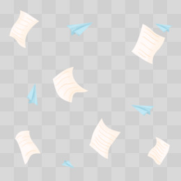 简约手绘卡通漂浮的纸张和飞机免抠元素