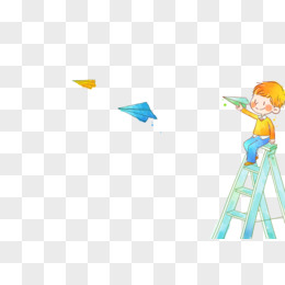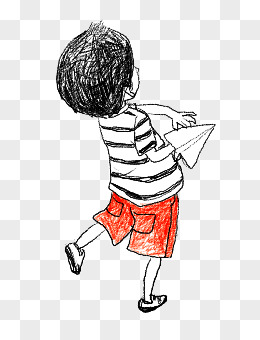 手绘卡通小孩玩纸飞机免抠元素