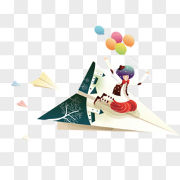 卡通插画人物纸飞机