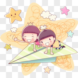 卡通纸飞机上的小孩