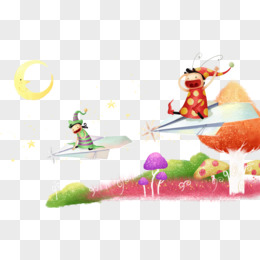 卡通纸飞机上的小女孩