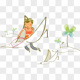 卡通坐在纸飞机的男孩免抠元素