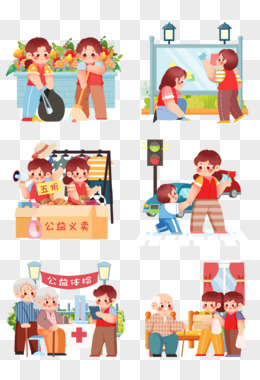 一组公益宣传志愿者志愿行动元素合集