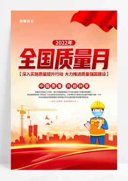 红色卡通插画全国质量月活动宣传海报2022全国质量月