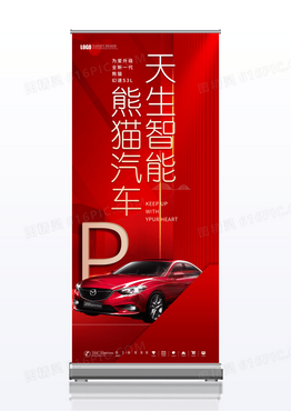 红色高端天生智能汽车宣传展架易拉宝