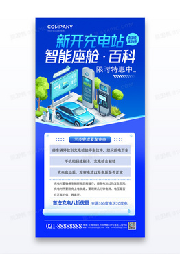 蓝色新开充电站智能座舱新能源充电桩汽车海报