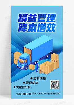 蓝色简约渐变精益管理降本增效包裹手机海报设计
