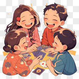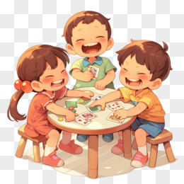 3D卡通三个小男孩在玩纸牌游戏免抠元素