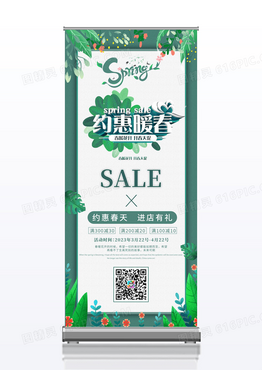 简约时尚绿色水彩植物背景约惠春天新品上市展架春季春天展架易拉宝