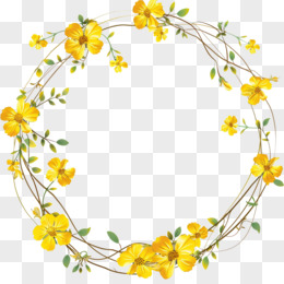 手绘水彩植物黄色红色花卉叶子装饰边框