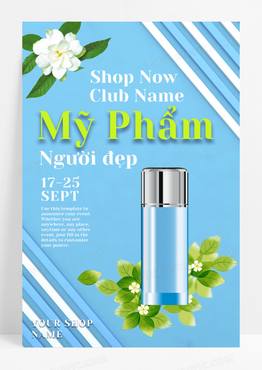 越南化妆品真鲜植物蓝底花护肤品海报设计