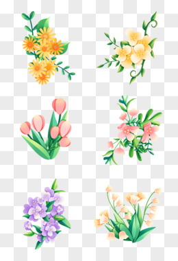 一组手绘卡通小清新花丛花朵装饰套图免抠素材