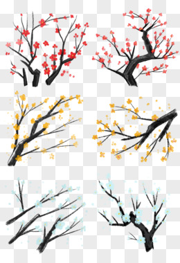 一组手绘中式水彩植物系列月份套图系列一之二月素材