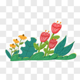 手绘简约扁平花丛免抠元素