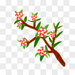手绘国潮风花枝免抠素材