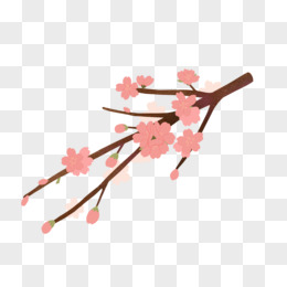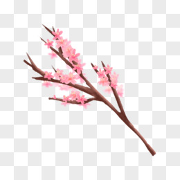 手绘粉色樱花花枝飘落花瓣免抠元素