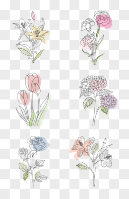 手绘卡通玫瑰花局部晕染简笔画线稿素材