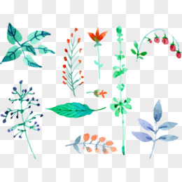 矢量手绘水彩植物