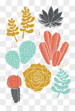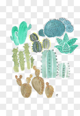一组手绘水彩风仙人掌植物系列六免抠元素