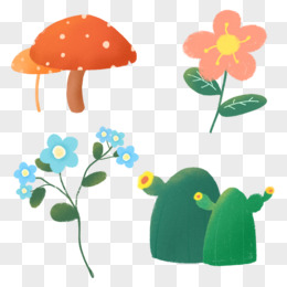 一组手绘免抠儿童剪贴画植物合集装饰元素