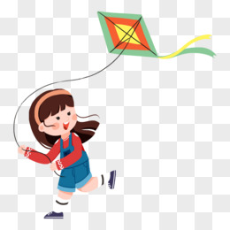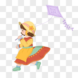 手绘放风筝的小女孩免抠元素