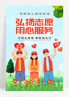 简约插画志愿者服务公益海报