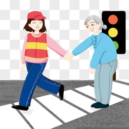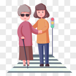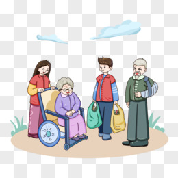 卡通手绘志愿者帮老人剪指甲免抠元素