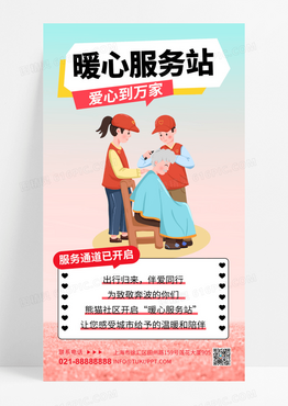 暖心服务站志愿者老人红色手绘海报宣传海报模板手机海报