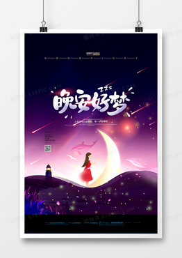治愈插画晚安好梦海报设计