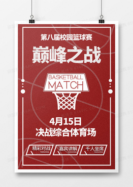 红色大气校园篮球赛巅峰之战宣传海报设计