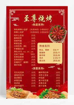 红色大气时尚中国风至尊烧烤饭店价目表菜单设计