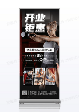 黑色简约健身房开业钜惠重磅来袭健身展架易拉宝