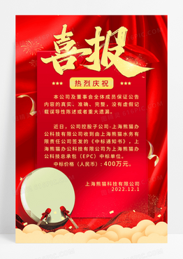 红色喜庆中标喜报宣传海报
