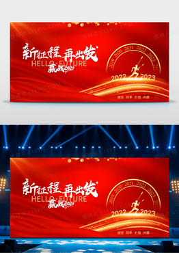 红色大气2023年兔年年企业会颁奖新征程再出发年会舞台背景