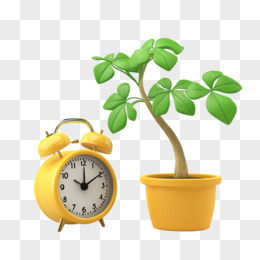 3D立体风格盆栽旁边一个时钟免抠元素