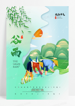 小清新简约二十四节气谷雨插秧人物手绘插画元素